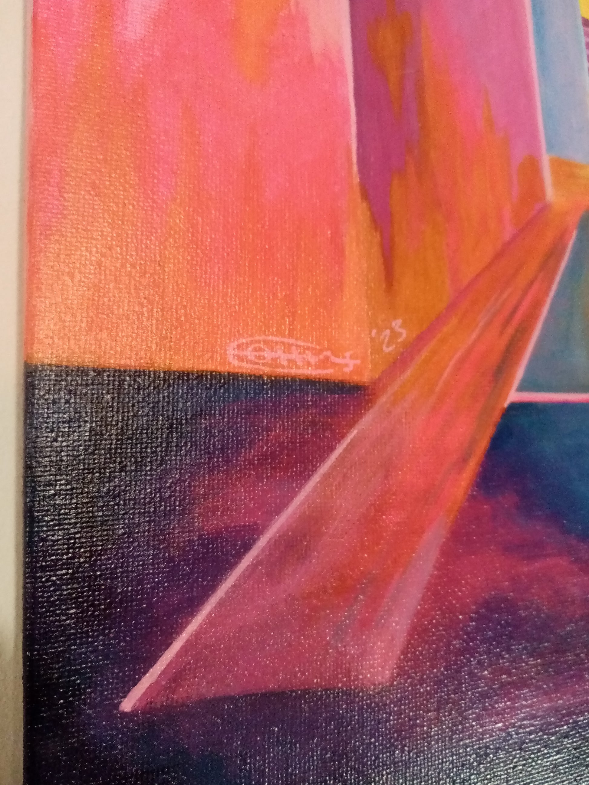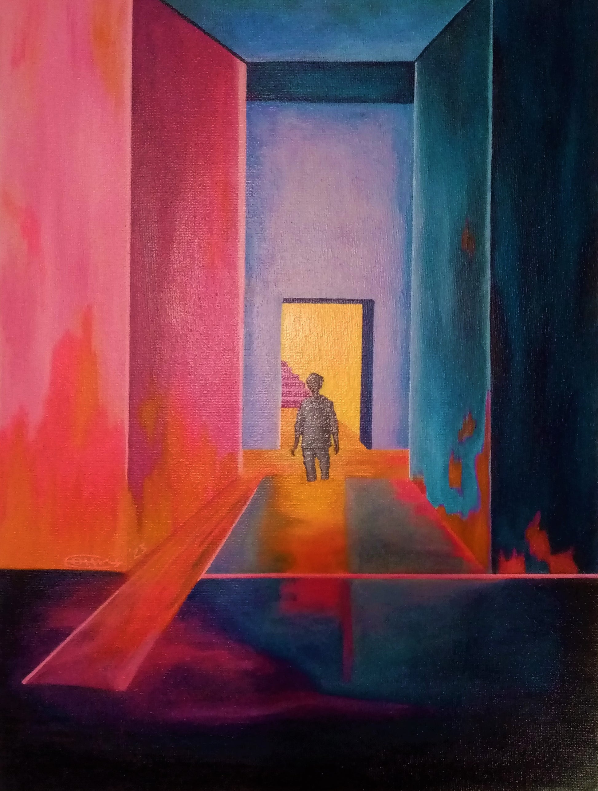 In this collection, vibrant colours and dynamic compositions come together to delve into the concept of transitional spaces - those 'in-between' places characterized by ambiguity, fluidity, and a sense of threshold where boundaries blur and new possibilities emerge.